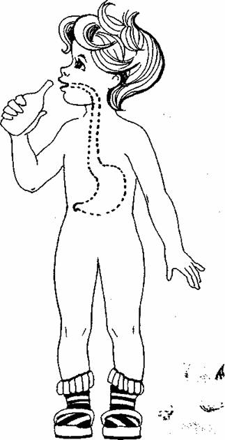 Bunica le spune copiilor - puneti mana la gura si suflati. Simtiti aerul cald care iese din organism? Copiii sufla in palma pusa la gura.