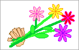 Indoiti degetele mainii de hartie pente tuplinile din palma, si lipiti varfurile degetelor astfel incat sa para ca manuta tine buchetul de flori. Daca