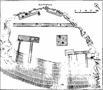Planul asezarii fortificate geto-dacice de la Tinosu (dupa Radu Vulpe, op. ci!.}.
