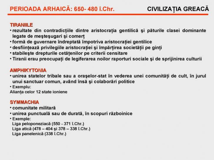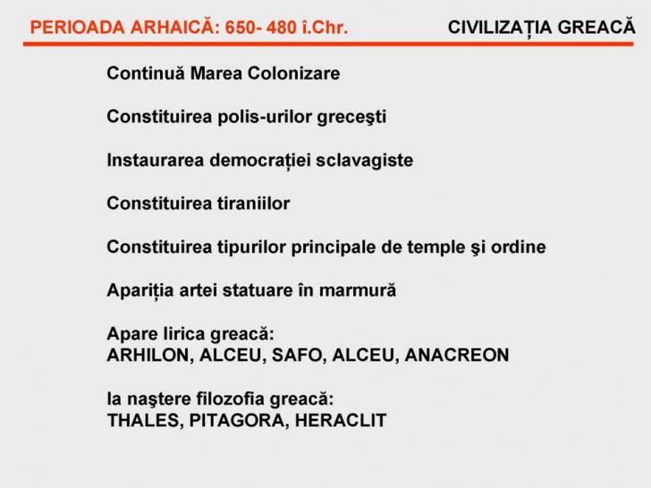 PERIOADA ARHAICĂ: 650-480 ī.Chr. CIVILIZAŢIA GREACĂ