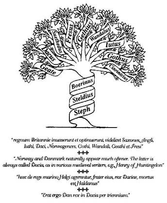 Acest document este o genealogie a popoarelor germane, o legenda a acestora. Astfel Steph, Steldius ori Boerinus este primul locuitor si initiator al popoarelor germane care are noua descendenti, cele noua popoare germanice vechi, initiatoare: Geate, Dacus, Suethedus, Fresus, Gethius, Wandalus, Iutus, Gothus, Cinrinicius.