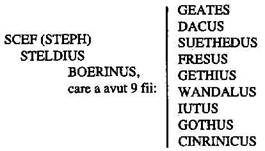 Revenind la cei 9 descendenti ai lui Boerinus (Boier n.a.) este clar ca ei nu reprezentau persoane ci popoare, iar pre-istoria devine dintr-odata un fascinant roman politist: cum de ei, germanii pot accepta ca doua dintre ramurile lor sa poarte nume ca Geate si Dacus! Sa fie oare o simpla coincidenta, ori, sosirea pe teritoriul Germaniei, atunci, a unui trib carpato-danubian, dupa retragerea calotei glaciale si încalzirii climei, sa fi generat aceasta legenda!