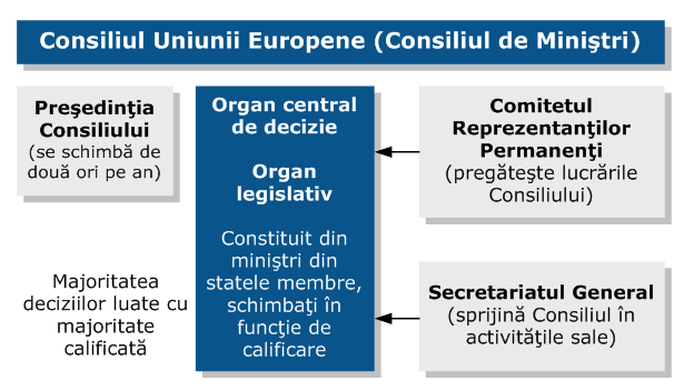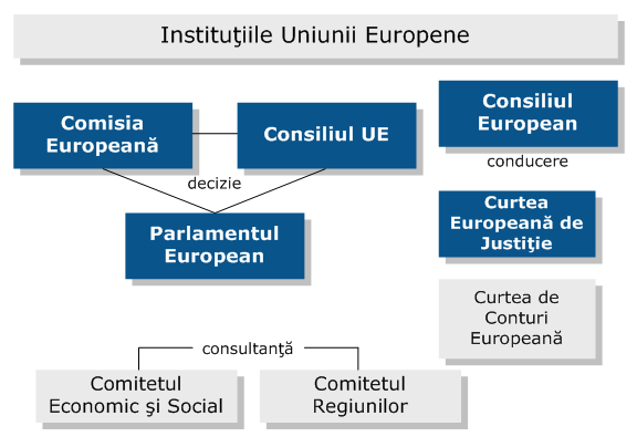 privire la administratia la nivel european), Banca Europeana de Investitii (institutia financiara a UE) si Banca Centrala Europeana (raspunzatoare de politica monetara in zona euro).