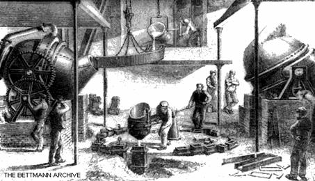 O data secretul aflat, productia de fier a crescut si s-au facut numeroase progrese tehnologice. Astfel, Watt si Boulton au folosit prima oara în 1775, motoare cu aburi pentru a da furnalelor curentul puternic necesar pentru a atinge temperaturi mari - unul din multele exemple de combinare cu succes a unor inventii în domeniul industrial. Fabricile de metal au dus la dez-voltarea unor orase ca Birmingham si Sheffield, iar Marea Britanie realiza în 1850 jumatate din productia anuala de fier din lume.