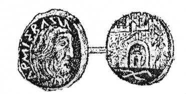 Fig. 1 - Moneda de aur descoperita in 1826 la Turda (dupa Hene, apud. N. Densusianu)