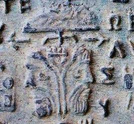 A este redat sub forma unui Λ cu un punct in interior, iar Z este intors. ΛE sunt redate legate, latura din dreapta a lui Λ constituind in același timp și hasta verticala a lui E. Deasupra inscripției, intr-un cerc perlat, pare sa fie reprezentata o pasare de talie mica și cu corp rotunjit. Aceeași reprezentare se gasește și in partea dreapta, deasupra numelui lui Moliseio. Între cei 15 regi reprezentați in genealogie, figura din cercul perlat nu mai revine decat deasupra lui Burebista, aflat la mijlocul randului de jos de regi, reprezentat și el mult mai mare decat ceilalți, dar cam la aceleași diemnsiunicu Sarmis și Moliseio. Ei trei par sa fie figurile centrale ale placii.