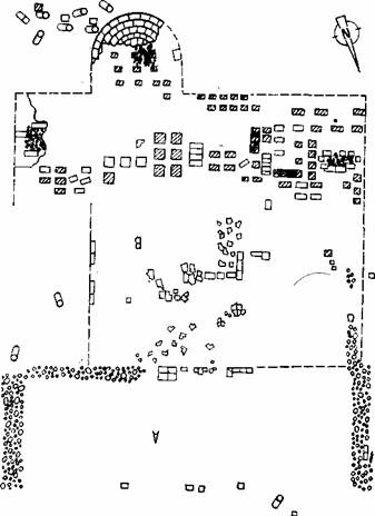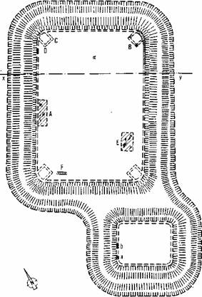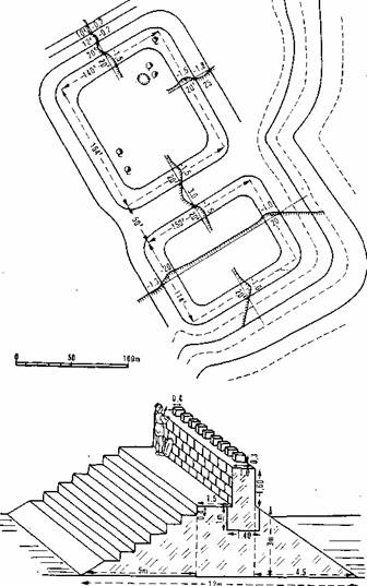 164X140 pasi, era prevazut cu un val īnalt de m si cu un sant adīnc de m. Pe una din