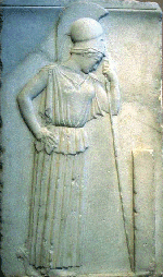 Atena "cu ochi de azur" era zeita intelepciunii, a razboiului dar si, in acelasi timp, protectoare a artelor, mestesugurilor si pacii. A fost nascuta, potrivit legendei, din capul tatalui sau, Zeus, care isi inghitise prima consoarta, pe Metis. Nici ea nu a acceptat sa se marite, lucru care i-a adus denumirea de Pallas ("fata tanara, curata"). Ei i s-a dedicat magnificul templu Parthenon din orasul ce ii poarta numele si a carei protectoare era. Minerva este numele ei roman. |