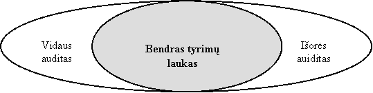 Is 2 paveikslo matyti, kad vidaus ir isorės auditas turi nemazą bendrą tyrimų lauką, kuriame yra bendradarbiaujama, siekiant gauti abipusę naudą. Kitaip tariant, surasti daugiau įrodymų, kurie patvirtintų arba paneigtų tam tikro dalyko būklę. Be to, isorės auditorius turi įvertinti vidaus auditoriaus darbą ir jo įtaką finansinės atskaitomybės audito procedūroms. Dėl sios priezasties įmonės vadovybė turėtų siekti uztikrinti vidaus ir isorės audito rysius kuo ankstesnėje audito stadijoje.