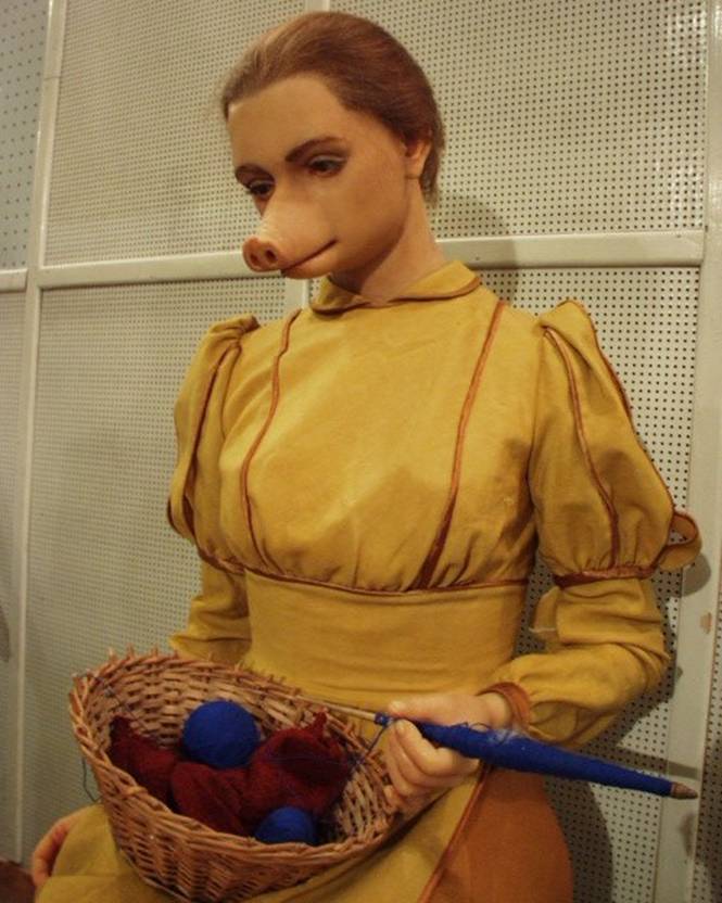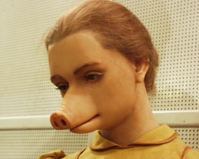 normální zena, ale místo nosu jí narostl prasečí rypák. V dospělosti