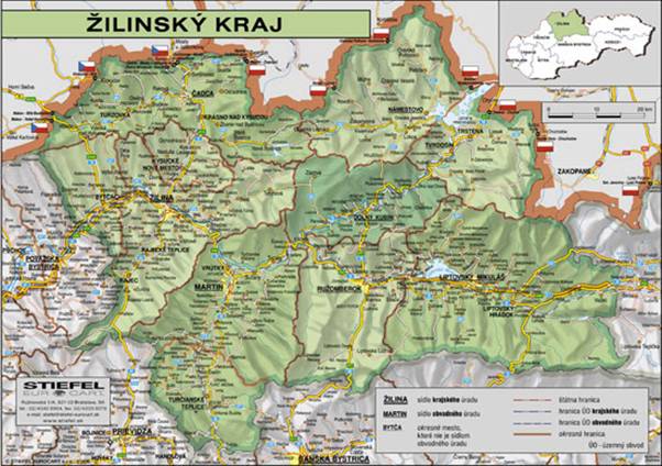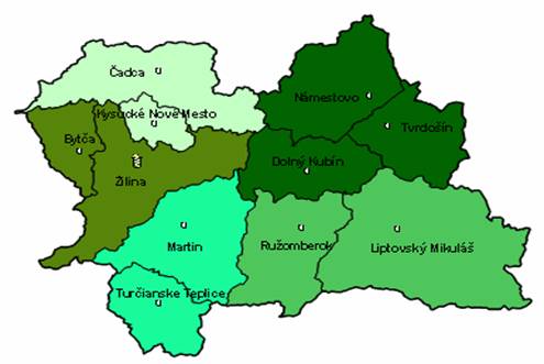 Obrázok č. 2: Mapa piatich historických regiónov Žilinského kraja.