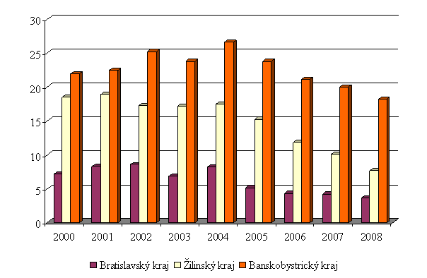 (Zdroj: Štatistický úrad SR, vlastné spracovanie k 31.12.2009)