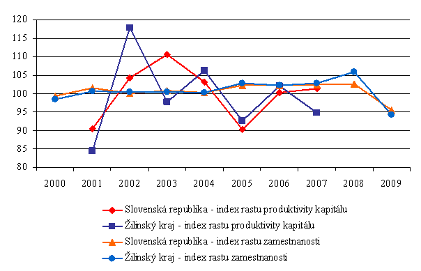 V kapitolách tri až päť som sa venoval analyzovaniu vývoja zamestnanosti, nezamestnanosti a produktivity práce a kapitálu v Žilinskom kraji v posledných desiatich rokoch. Analýzy boli vykonané osobitne na zamestnanosť aj na produktivitu. Následne boli porovnané aj vzájomné vzťahy medzi vývojom zamestnanosti a produktivity v Žilinskom kraji. V šiestej kapitole som zhrnul závery vyplývajúce z analýz a charakterizoval som súčasnú situáciu v Žilinskom kraji.