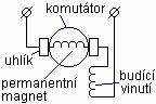a) sériové - budící a rotorové vinutí spojeno sériově, otáčky lze řídit pouze změnou výkonu motoru, nelze pouzít k reprodukci (vrácení) energie