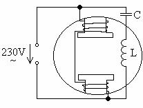 Pro roztočení je potřeba pomocné vinutí. Kondenzátor způsobí posun proudu v pomocné cívce. Točivé magnetické pole po rozběhu cívku odpojí odstředivou silou. Pro napájení a řízení elektrických motorů se pozívají usměrňovače, střídače, stejnosměrné a střídavé měniče. Pouzití: Pračky, ledničky. |