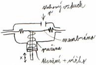Změnou tlaku p vzduchu dochází k posuvu akčního členu. Při zvýsení tlaku p jde proti pruzině akční člen směrem dolů. Při snízení tlaku je akční člen vlivem pruziny tlačen nahoru.