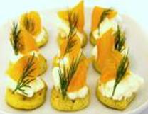 postup: Toastový chléb nakrájíme na větsí kostičky. Tvaroh smícháme s prolisovaným strouzkem česneku, osolíme, opepříme a zakápneme lzičkou koňaku. Nejlépe vakuovaného lososa naporcujeme na kousky a připravíme si snítky kopru. Na toast dáme vzdy lzičku ochuceného tvarohu, kousek lososa a dozdobíme větvičkou kopru.