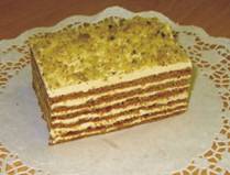 Krém: Mléko, hrubou mouku vaříme jako pudink. Po vychladnutí utřeme s máslem, cukrem a zloutkem. Krém rozdělíme na dvě části - světlou a tmavou. Do čokoládového krému přidáme pouze 4 lzíce kakaa a dobře vymícháme. Nozem obřezeme okraje a nakrájíme ho na stejné kostky nebo kosočtverce