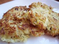 3. Do rozehřátého tuku klademe lzící bramborové těsto,vidličkou rozetřeme na placku a osmazíme po obou stranách dozlatova