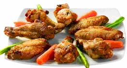postup: Křidélka osolíme, obalíme v koření, usmazíme ve fritéze.