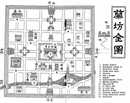 Nosiči polozili nosítka před chrámem Boha války. Zatímco je soudce vyplácel, vyptával se serzant Chung dvou pobudů, kteří seděli na sirokých kamenných schodech chrámové brány. Ptal se na cestu k levnému nevěstinci, umístěném ve starém vojenském baráku. Odpověděli mu s pohrdavým úsměskem.