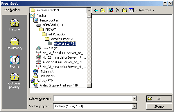 okně slozku, ve které je ulozen soubor ExcelAsistent.xla