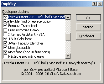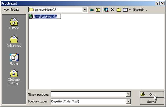 . soubor ExcelAsistent.xla vyberte kliknutím a potvrďte volbu stiskem