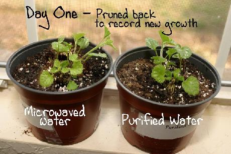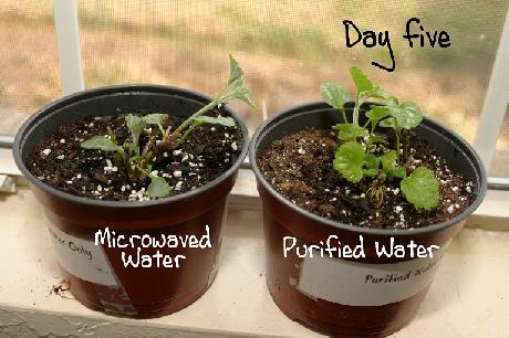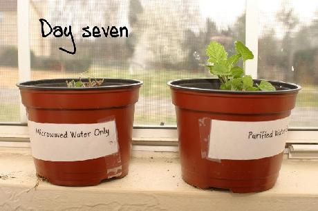 Bězná přefiltrovaná voda byla rozdělena do 2 nádob. Jedna byla převařena na sporáku, druhá v mikrovlnné troubě. Poté byly tyto vody vyuzívány k zalévání rostlin. Sami si můzete doma ov 454e421e 3;řit.