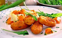 Mrkev, petrzel, kedluben a celer očistíme a nakrájíme na mensí kousky. Nakrájenou zeleninu osolíme a osmazíme na oleji. Potom 17317l1111r ji podlijeme mensím mnozstvím masového vývaru, přikryjeme pokličkou a necháme dusit do měkka. Během dusení podle potřeby podléváme vývarem. Pak zeleninu rozmačkáme vidličkou a necháme vychladnout. Do masy přidáme předem namočený a vymačkaný rohlík, nakrájenou pazitku, zloutek, strouhanku, sezamová semínka, strouhaný tvrdý sýr a tuhý sníh z bílku. Osolíme, opepříme a promícháme. Z masy formujeme mensí krokety, které smazíme na pánvi v rozpáleném oleji. Podáváme s vařenou zeleninou.