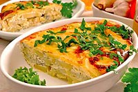 zalijeme ji smetanovo-sýrovou směsí a dáme péct do vyhřáté trouby.