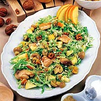 Před podáváním salát posypeme posekanými vlasskými ořechy.