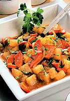 kostky, posypeme vegetou a promícháme. Očistěnou mrkev a celer