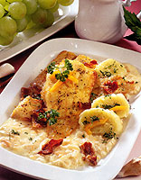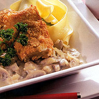 Filé umyjeme, pokapeme citronovou sťávou a na dvě hodiny dáme na chladné místo. Potom osusíme, obalíme v mouce, ve vejcích rozslehaných se solí a rozdrcených lupíncích. Na rozpáleném oleji smazíme z obou stran. Filé podáváme s těstovinami a přelité omáčkou.