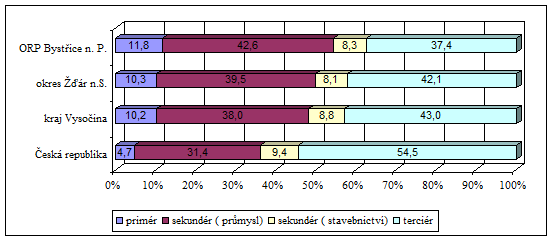 Tab.9: Ekonomicky struktura obyvatel v jednotlivých obcích obvodu ORP Bystřice