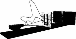 vhozeného do rybníka, jak ilustruje obrázek 4.7. (Pokus snadno realizujete uzitím kartonu s dvěma otvory v pánvi naplněné vodou.) Jelikoz se vlny z obou stěrbin překrývají, stane se něco zajímavého. Kdyz se překrývají dva hřebeny vln (to jsou místa, kde voda dosahuje nejvýse), výska vodní vlny v tomto místě vzroste: je součtem výsek obou jednotlivých hřebenů. Podobně se zvětsí pokles vodní hladiny v bodě, kde se překrývají údolí obou vln (místa s maximálním poklesem hladiny). A nakonec, pokud se hřeben jedné vlny překryje s údolím vlny druhé, navzájem se rusí. (Tohle je ve skutečnosti princip důmyslných sluchátek odstraňujících hluk - měří tvar přicházející zvukové vlny a vytvářejí vlnu s přesně "opačným" průběhem, coz vede k anulování nezádoucího hluku.) Mezi těmito extrémními body - překryvem dvou hřebenů, dvou údolí nebo jednoho údolí s jedním hřebenem - je celá řada bodů s částečným zvětsením nebo kompenzací výsky hladiny. Kdyz se svou partou utvoříte řetěz malých loděk rovnobězný s překázkou a kazdý ohlásí, jak moc s ním lomcují procházející vlny, výsledek bude vypadat přiblizně jako v pravé části obrázku 4.7. Místa, kde vlna s loďkou nejvíce houpá, vznikají v bodech, kde se střetají hřebeny (nebo údolí) vln z kazdé stěrbiny. Oblasti, kde voda téměř nebo vůbec nesplouchá, se nacházejí tam, kde se hřeben jedné vlny setkává s údolím vlny druhé, čímz se vibrace anulují.