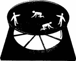 Uzili jsme tedy zrychleného pohybu točícího se tornáda k imitaci gravitace a můzeme se teď spolu s Einsteinem podívat, jak se jeví prostor a čas někomu na kolotoči. Einsteinovo uvazování, přizpůsobené nasí situaci, vypadalo následovně. My jako nehybní pozorovatelé můzeme snadno změřit obvod a poloměr kolotoče. Obvod například změříme tak, ze měřítko přikládáme podél obvodu kolotoče začátkem na místo, kde předtím lezel konec; stejnou metodu lze uzít pro měření poloměru, pokud od středové osy postupujeme po vhodné dráze az k obvodu. Jak víme z hodin geometrie na základní skole, jejich poměr je vzdy roven dvojnásobku Ludolfova čísla je - asi 6,28 - stejně jako pro jakoukoli kruznici nakreslenou na plochém listu papíru. Ale jak věci vypadají z pohledu pozorovatele na kolotoči?