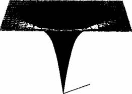 Druhá vada nasí analogie pramení z dvojrozměrnosti gumové blány. Slunce (i ostatní objekty) ve skutečnosti zakřivují trojrozměrný prostor. (Obrázek 3.6 se to snazí schematicky zobrazit.) Vsechen prostor kolem Slunce - "pod ním i nad ním", "po stranách" i "vpředu a vzadu" -