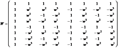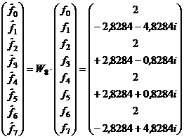 Výsledek obsahuje 8 hodnot, přičemž druhou polovinu tvoří hodnoty komplexně sdružené k prvním.