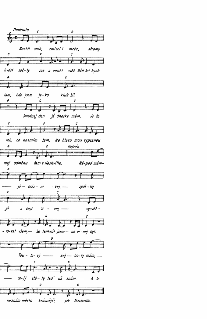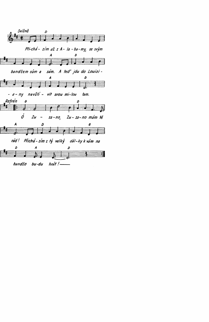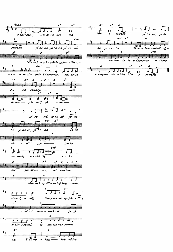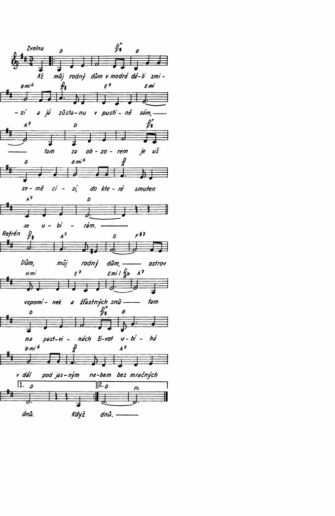 vzpomínek a sťastných snů A7 D D+/F# G Gmi6 tam na pastvinách zivot ubíhá v dál D/A A7 D pod jasným nebem bezmračných dnů. Kdyz po světě sám ztichlou