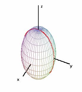 Hlavní osa lezí na souřadnicové ose z, vedlejsí osa na ose y. Velikost hlavní poloosy označme a, velikost vedlejsí poloosy označme b, pak elipsa je dána rovnicemi