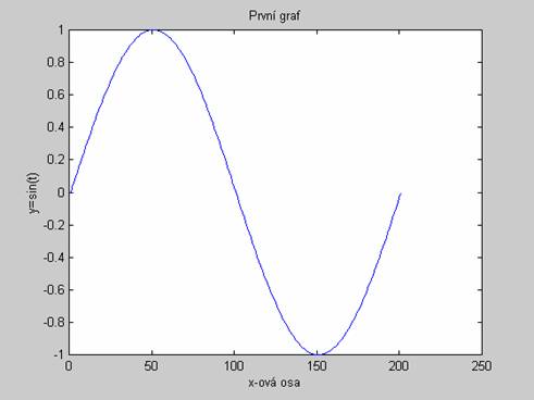 axis(xy) nastaví MATLAB na implicitní kartézský rezřim os. Počátek souřadnicového systému je nyní v levém dolním rohu, osa y je svislá číslovaná zdola nahoru, osa x je osa vodorovná číslovaná zleva doprava.