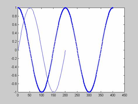 Grafy funkcí lze v MATLABu vykreslit několika způsoby. Nejjednodussí je pouzít funkce plot. Např. následující příkazy by vykreslily průběh funkcí sinus a kosinus.