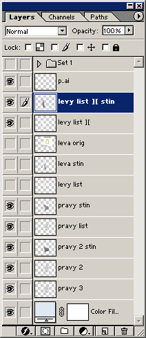 jste to jestě neudělali, vyberte vrstvu s pravým listem.