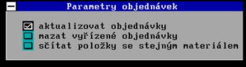 nastavení/Parametry objednávek. Parametry objednávek rovněz vyvoláte kdekoliv současným stiskem kláves <Ctrl/O>.