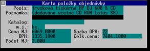 ručně stiskem klávesy <F3>. Program poté zobrazí kartu polozky objednávky. Polozka