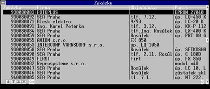 (kam se dostanete po stisku <F3>) pak jednotlivé polozky objednávky.
