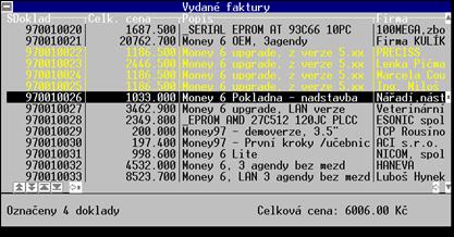 vytisknout. Stiskem klávesy <+> je mozné označit vsechny doklady