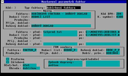 <F9>. Pokud nemáte zádný typ faktury zadán, je prázdný. V opačném