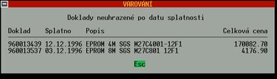 Seznam upomínkovaných dokladů je mozné téz vytisknout po stisku klávesy <F10>.