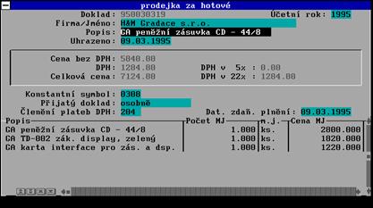 v hotovosti slouzí k prodeji za hotové. Po potvrzení volby klávesou
